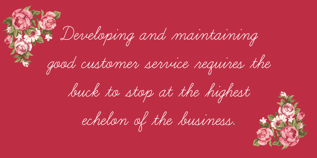 In creating, developing, and maintaining customer service the buck stops at the desk of the highest echelon of the business.